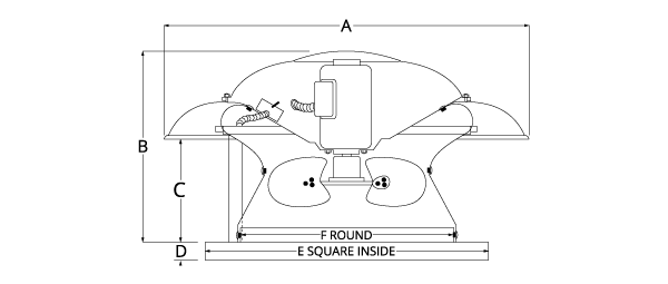 The AR series offers powerful axial exhaust (ARE) or supply (intake) (ARS) performance in a compact, lightweight and easy to install roof mounted design. Available in 3 model sizes, the AR series has a CFM range from 857 to 2,827 CFM, with static pressure capability up to 3/4".