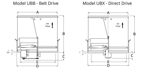 UBB and UBX are high capacity roof mounted exhausters rated from 5,900 to 78,000 CFM. They are general ventilation units designed to economically remove large volumes of air, fumes, and vapors from commercial and industrial buildings such as warehouses, manufacturing and assembly plants, distribution centers, chemical plants, foundries and paper mills.