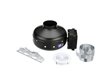 The PV-POWERVENT series of direct drive centrifugal in-line duct ventilation fans consists of twelve model sizes 4", 5", 6", 8", 10" and 12.4" respectively. All models are designed for direct connection in-line with standard diameter round ducting. Airflow performance values range from 153 CFM (PV-100X) up to 943 CFM (PV-315X).