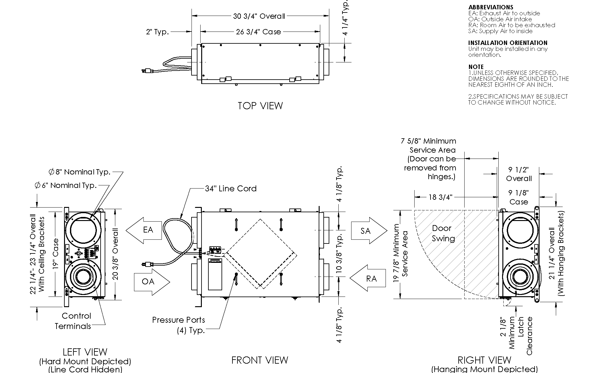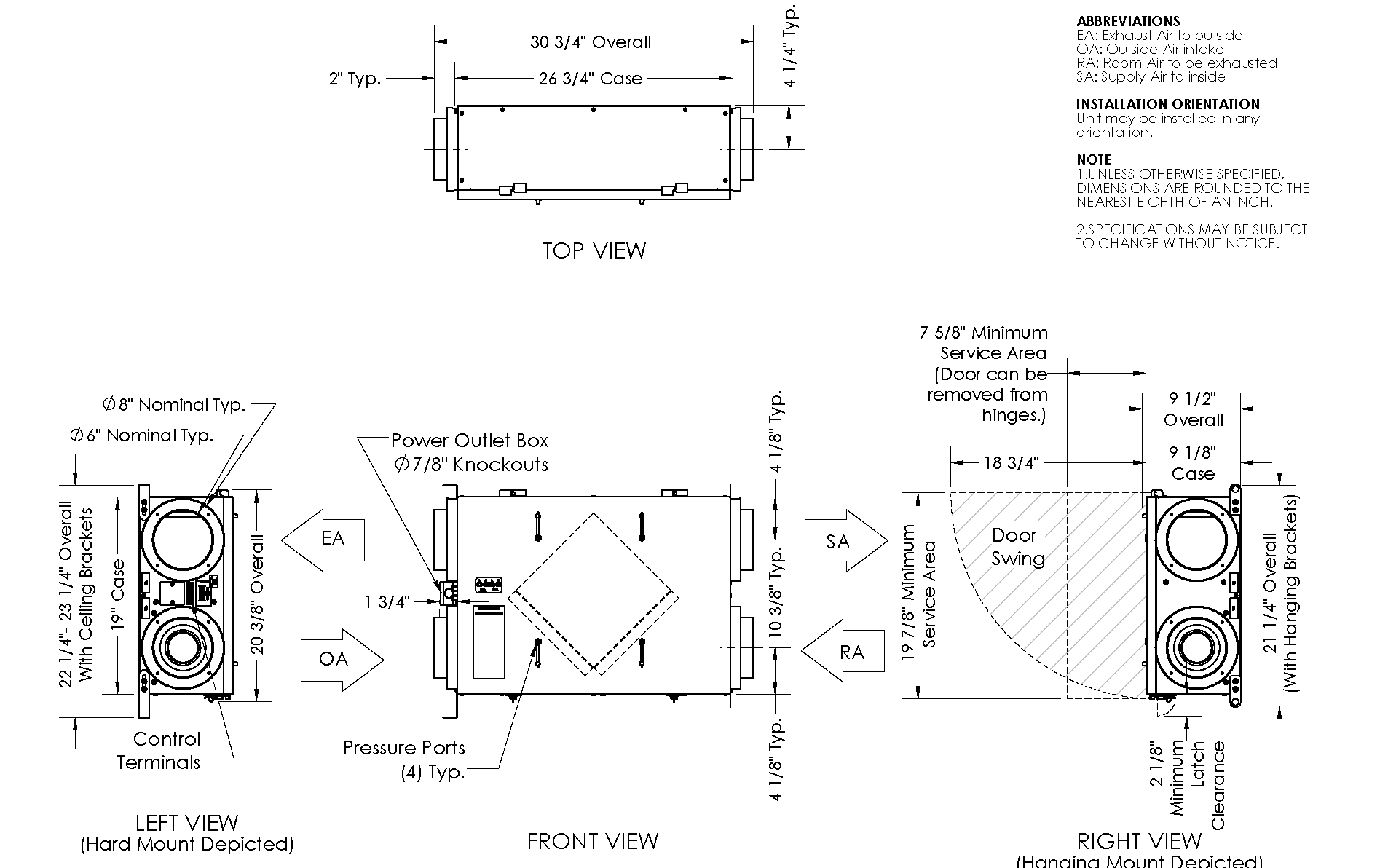- Capable of being installed in ceiling or wall mounting with a minimum height or depth of 9.5"