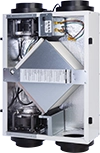 - Fixed-plate cross-flow core, capable of transferring both sensible and latent energy between airstreams.