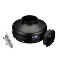 The PV-POWERVENT series of direct drive centrifugal in-line duct ventilation fans consists of twelve model sizes 4", 5", 6", 8", 10" and 12.4" respectively. All models are designed for direct connection in-line with standard diameter round ducting. Airflow performance values range from 153 CFM (PV-100X) up to 943 CFM (PV-315X).