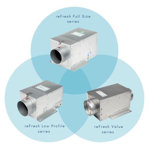 Find the right reFresh model for your application today! Options include corded or hardwired, with or without our Envirosense ES24V controller, and two sizes to fit your needs and budget.