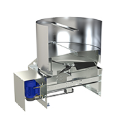 Model UBSRD units are high capacity, belt driven roof mounted exhausters rated from 3,700 to 67,000 CFM. The motor and drives are located outside of the exhaust airstream, making these units especially suited for the removal of heated or contaminated air from commercial and industrial buildings or processes where these conditions exist. All models are capable of continuous operation exhausting air to 200°F.