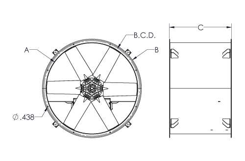 The Tubeaxial line offers the widest range of sizes, horsepower, and performance in the industry. TDD's are high capacity tubeaxial fans rated from 643 to 39,194 CFM, with static pressure capability up to 1-1/4". They are used to exhaust air from or supply air to commercial and industrial applications, such as general building ventilation, enclosed garages, and other applications where the air is moved through a duct system against moderate static pressure.
